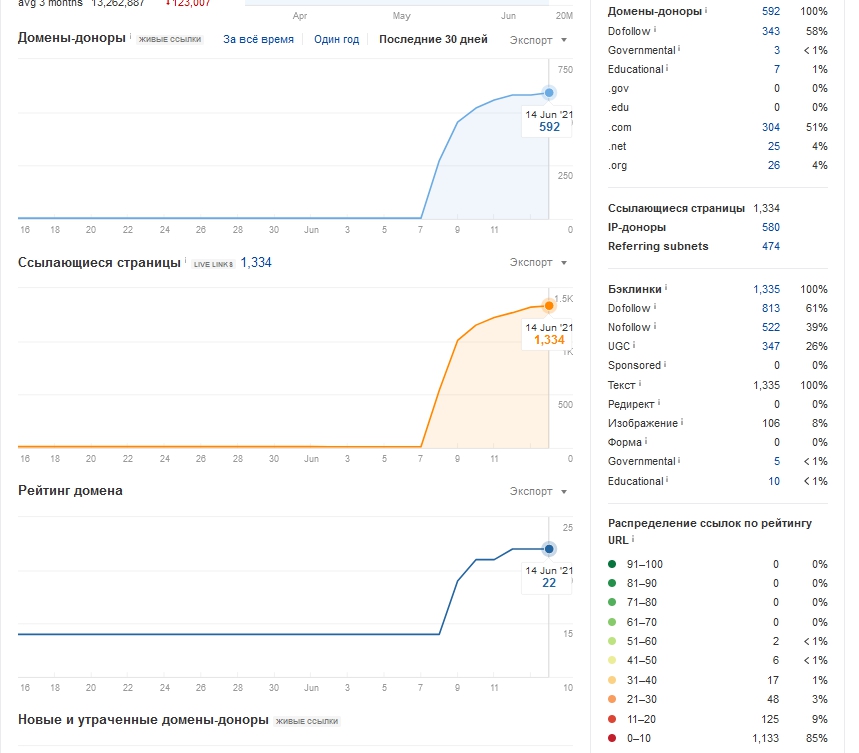 Кол-во ссылающихся страниц выросло с 12 до 1334